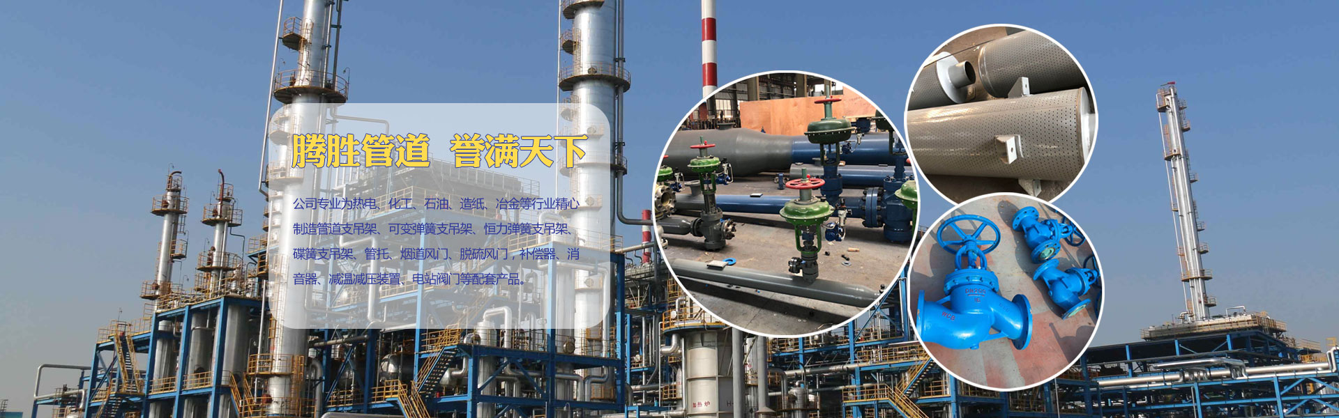 公司專業為熱(rè)電、化工、石油、造紙、冶金等行(háng)業精心製造管道支吊架、可變(biàn)彈簧支吊(diào)架(jià)、恒力彈簧支吊架、碟簧支吊架、管托、煙道風門、脫硫風(fēng)門,補償器、消音器、減溫減壓裝置、電(diàn)站閥門等配套產品(pǐn)。